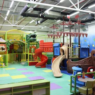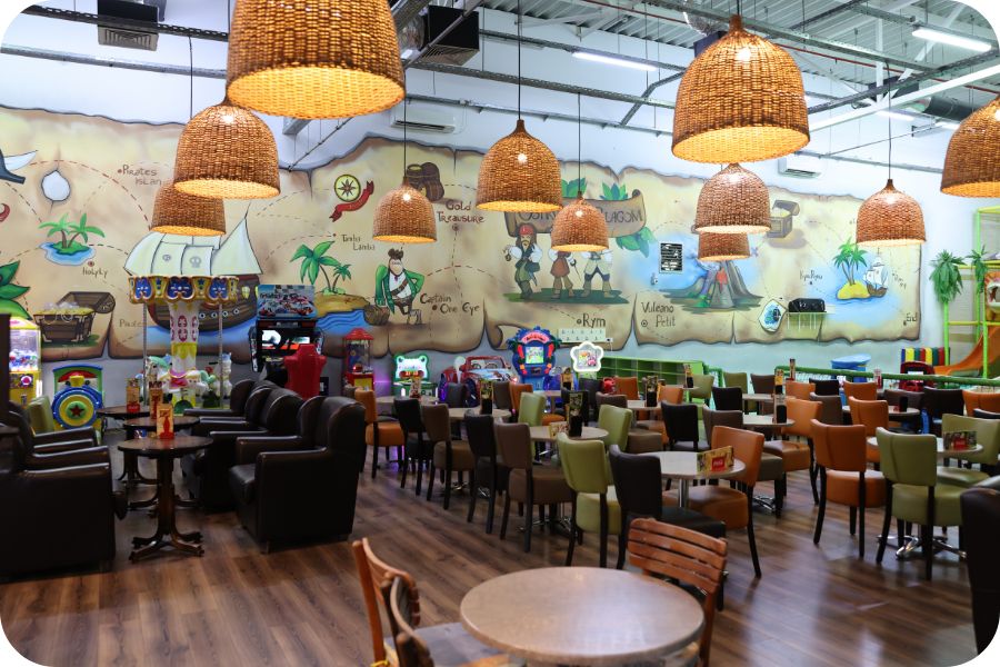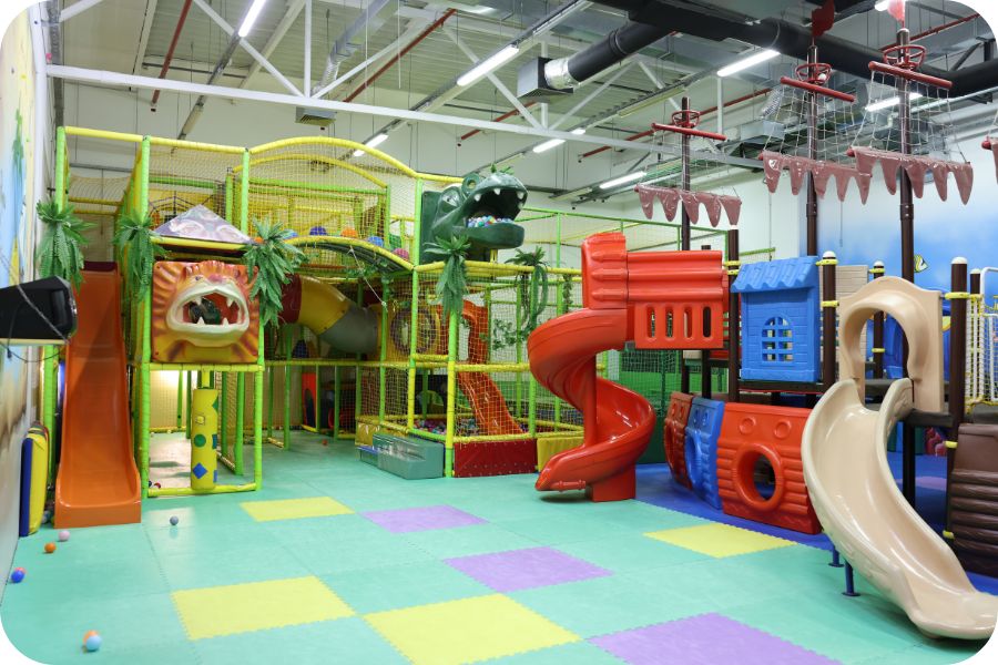 Dečiji svet sadrži: brod, džunglu – 3D lavirint na tri nivoa, teren za fudbal i košarku, električne igračke za decu, kao i bazene sa lopticama za najmlađe.